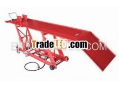 Thisall steel motorcycle lift is strictly hands free so you canposition or stabilize your bike or ATV as needed. Thismotorcycle/atv lift raises up to 680mm high with the use of aconvenient foot-pump. Two 3" casters make maneuverability smoothand easy. When you’re done, the motorcycle lift folds for easystorage.